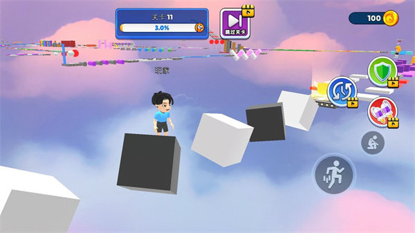 下蹲、跳跃、奔跑、前进,尝试运用各类跑酷技巧冲向终点吧。