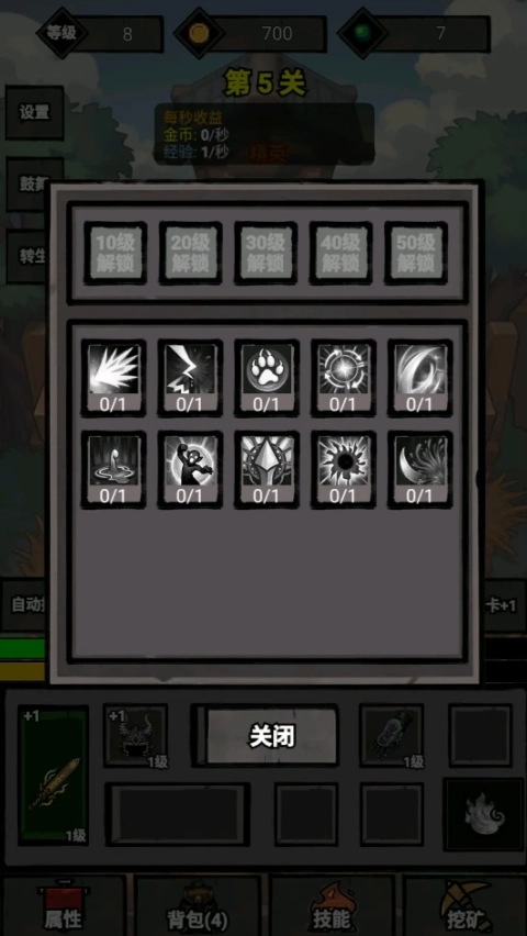 7、此外,游戏内还设有技能系统,不过目前我还未摸索出使用方法。若有对这款挂机游戏感兴趣的玩家,不妨自行尝试探索其中的玩法。