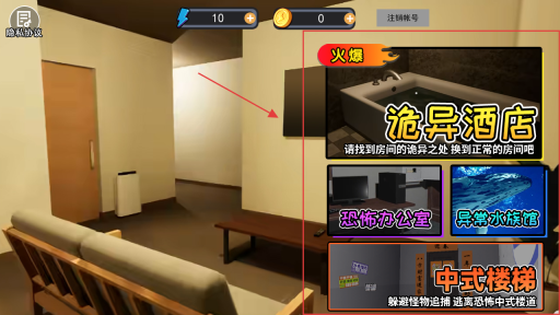 2、按自己喜好选择场景,进入后全面搜索房间,找不合理之处。