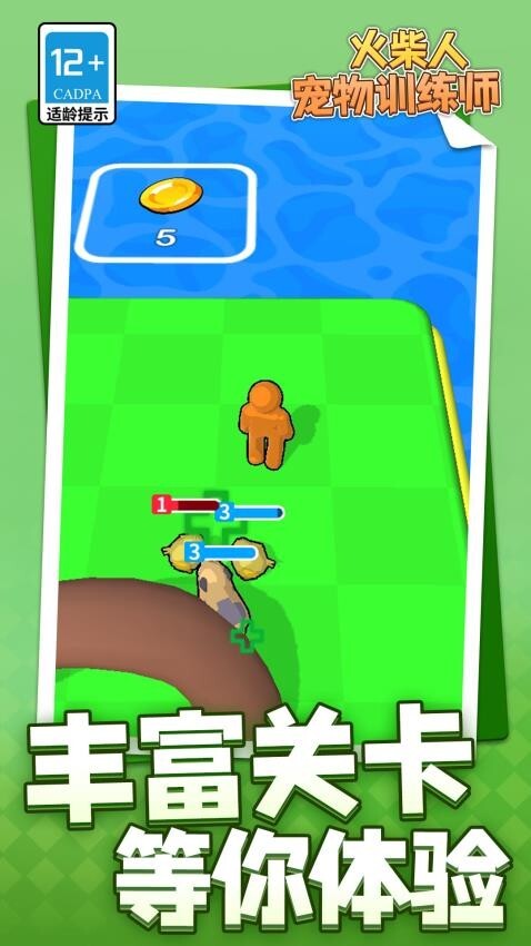 《火柴人宠物训练师》是一款动作冒险游戏,拥有广阔的地图供玩家探索。在这个火柴人世界里,存在着众多野生且可驯服的动物,玩家能够驯服它们,将其作为宠物进行训练,让它们陪伴自己一同战斗冒险,逐步壮大宠物队伍,以应对更大的挑战。