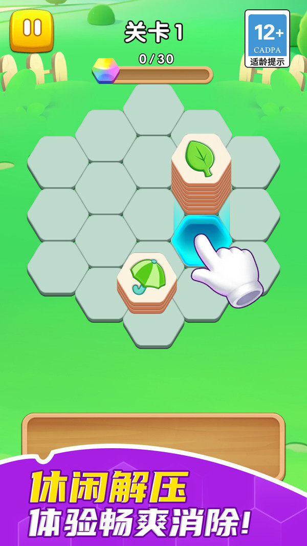 1、游戏玩法轻松有趣,简单易上手,不存在过于复杂的操作方式与流程,只需依据图形提示摆放各类方块就能顺利通关。