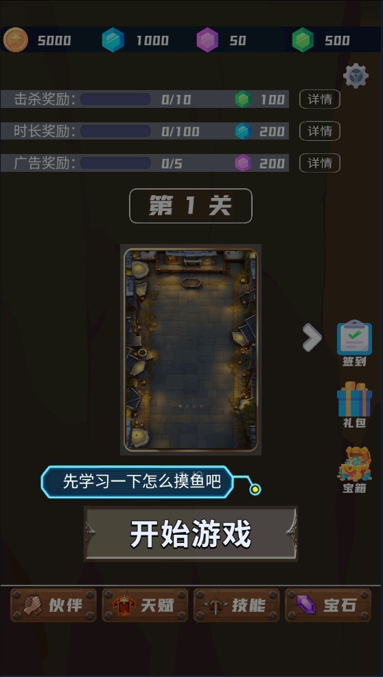 1、先学习一下怎么摸鱼,点击开始游戏