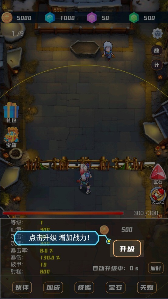 2、根据引导,点击升级提升战斗力