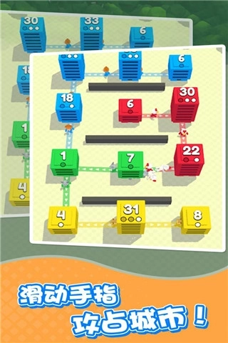 城市争夺战是一款策略游戏,玩家将以指挥官的身份,通过连线的方式派遣士兵去攻占敌方的大楼。当连线出现重叠时,双方的士兵就会展开激战。在游戏过程中,玩家需要依据大楼的人力承载量,手动切断线路来调整策略,最终目标是占领所有大楼以获得胜利。这款游戏的特色在于把简单易上手的连线模式和复杂的战场环境融合在一起,这样的设计大大增强了游戏的策略性,能让玩家充分发挥自己的聪明才智。此外,游戏还采用了卡通激萌的画面风格,设置了超多的关卡供玩家挑战,并且提供了上百种个性装扮,玩家可以利用这些装扮打造出独特的人物风格,尽情体验策略对战带来的独特魅力。