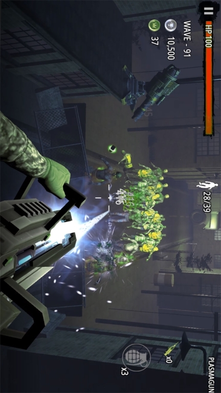 2、面对对你紧追不舍的僵尸军团,选择与它们正面交锋,用疯狂的扫射给予毫不留情的打击。