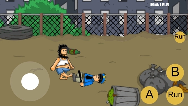 游戏采用直观的触控操作方式,屏幕左侧的虚拟摇杆控制角色移动,右侧则设有攻击键和奔跑键。玩家需要灵活运用这些操作来应对各种挑战。游戏初期,你需要快速掌握战斗技巧,通过简单的A键出拳就能击败两名巡逻保安。随着游戏深入,更复杂的连招系统将被解锁,比如使用ABA连招可以让角色从嘴里吐出食物来吸引女性NPC的注意,再抓住时机按A键发动攻击。这些操作虽然简单,但需要玩家掌握时机和节奏。