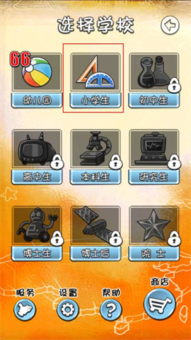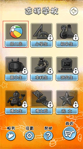 1、启动游戏后,先选择角色性别,接着进入系统主页面。新手玩家一开始能体验升学之路和天朝大百科,非常问答要升到高中生才能解锁。