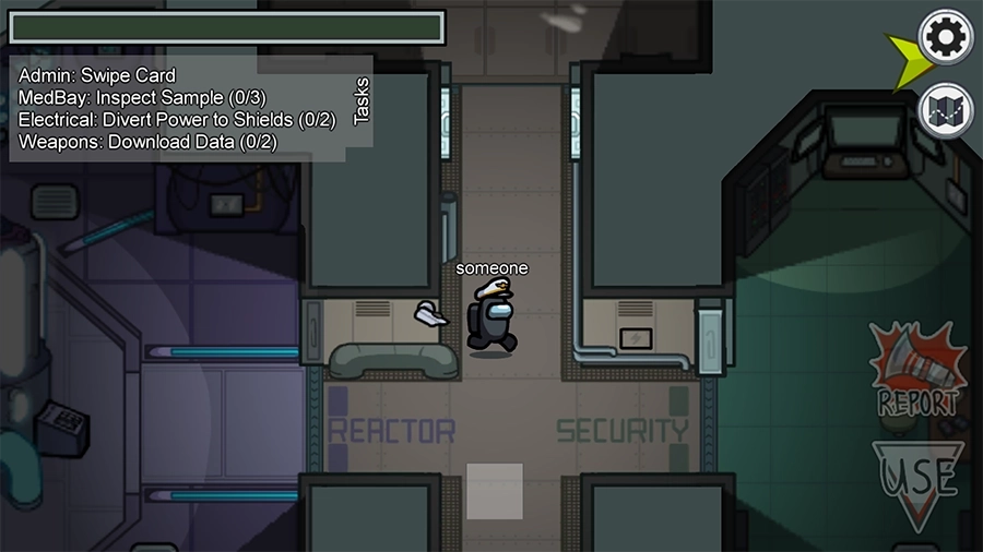 TheSkeld在食堂的正中央放置了紧急按钮。其他还有能够观看每个房间玩家数量的管理室,还有能够确认4处通路监视器的监控室。