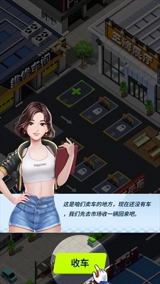 2.这是我们卖车的地方,现在还没有车,我们去集市收一辆吧。到达集市后,玩家可以看到很多车辆,不用担心,随着我们知名度的提高,你可以买到任何你想要的车;