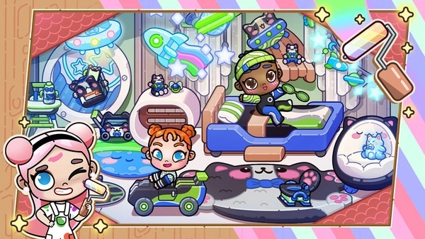 4.玩家自创空间:自由布置房间、调整角色造型、设计宠物空间,搭配丰富素材,让每个玩家都能创造独特风格的生活样貌。