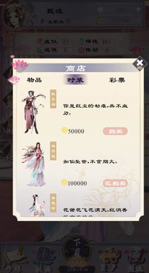 3、还可以在商店购买各种物品、时装,购买时金币不会减少;