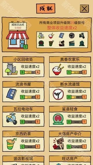 另外开设一定数量的店铺还能获得声望,解锁成就开设连锁,让你在致富的路上不断的前行吧!