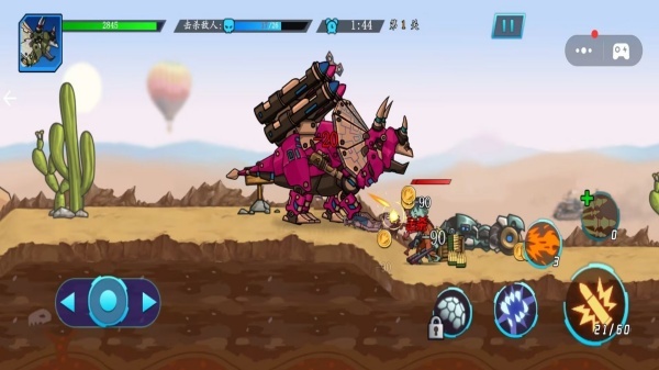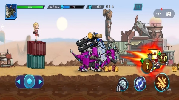 2、战斗融合了近战与远程攻击的形式,各类恐龙的战斗风格存在显著差异,比如霸王龙能够借助赛博战甲发动机甲冲击。