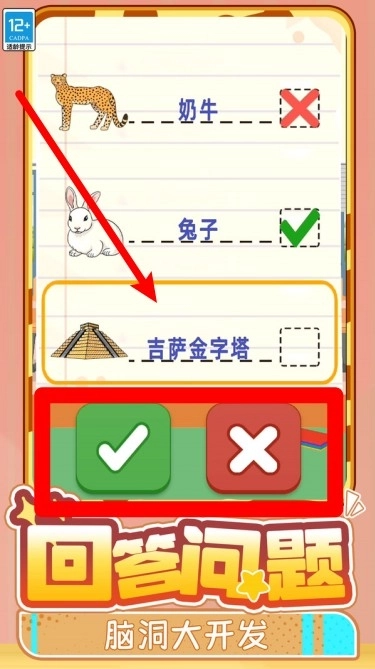 3.问答判断:观察题目如吉萨金字塔等知识点,选择绿色勾或红色叉,答对加分答错罚款,注意时间条保持节奏。