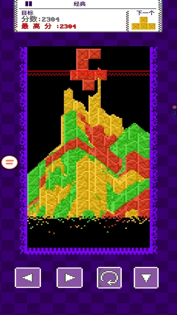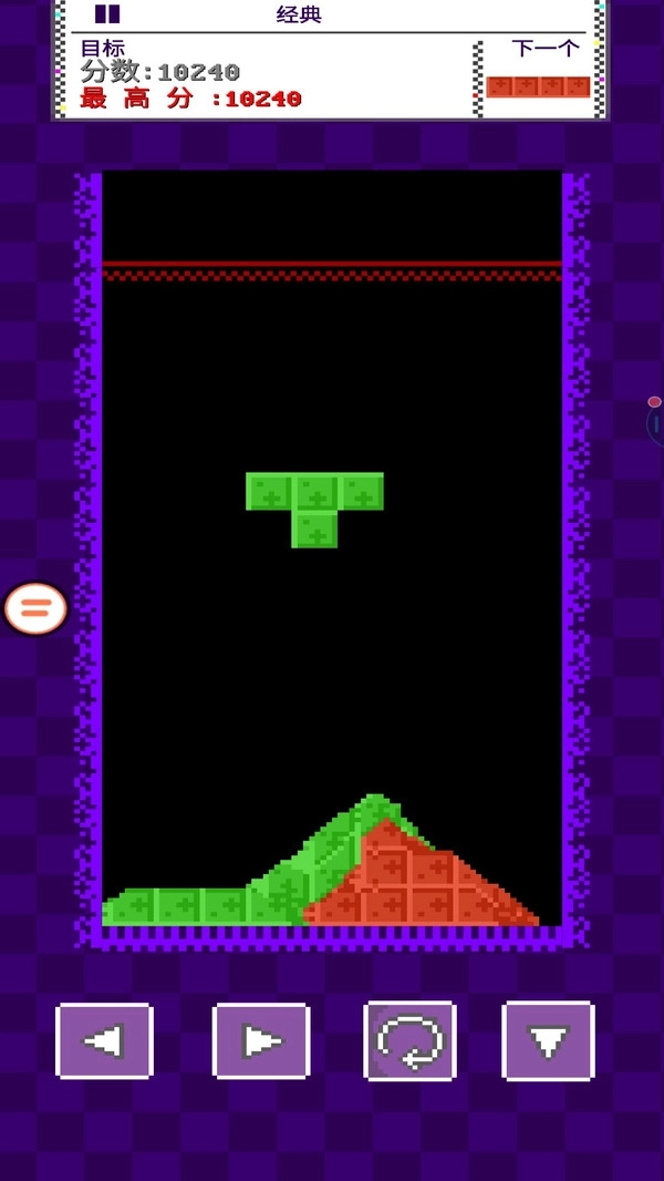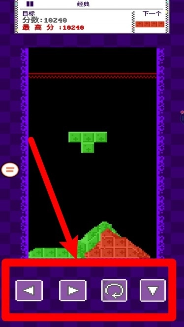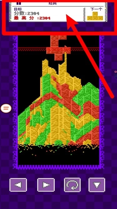 2.屏幕下方的方向与旋转按钮可控制方块移动与旋转,灵活操作能帮助玩家更好填补空隙,顺利完成消除与积分。