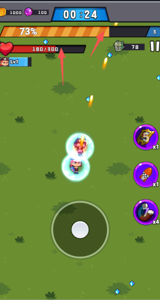 4、游戏进行时要随时留意左上角的角色生命值情况,另外也要观察屏幕上方的进度条,以此了解当前关卡的完成进度。