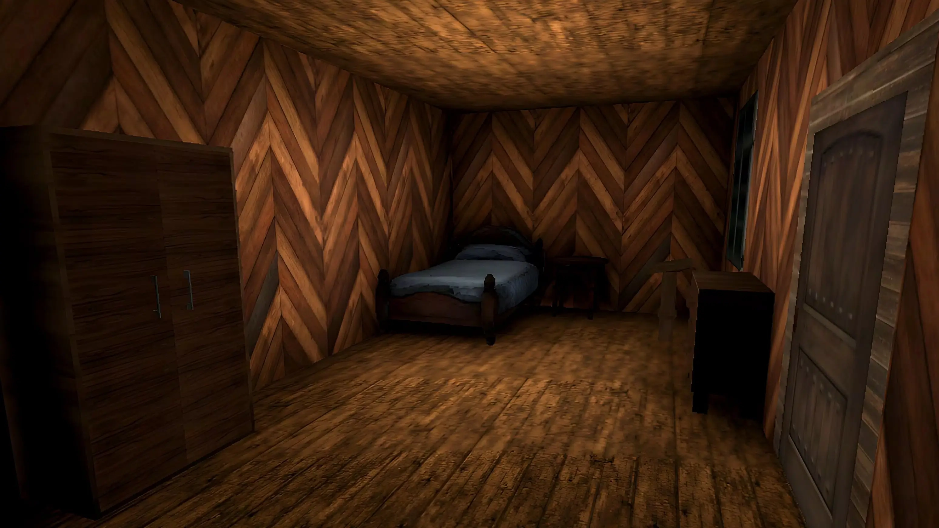在这款游戏里,我们得躲避老奶奶的追捕,总共能在这里生存五天——相当于有五次机会。你得搜寻并找到钥匙等物品来开门,逃出这所房子;但一定要小心,奶奶能听见所有动静,所以你得持续寻找能帮我们渡过难关的线索。游戏的核心是解谜冒险,需要玩家一步步揭开谜团,所有剧情探索都得由玩家自主挑战。