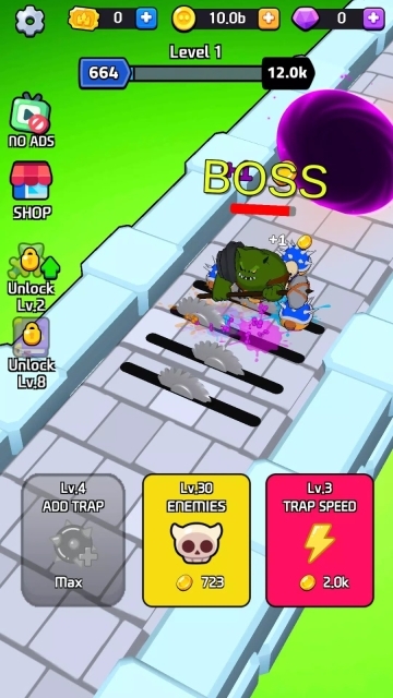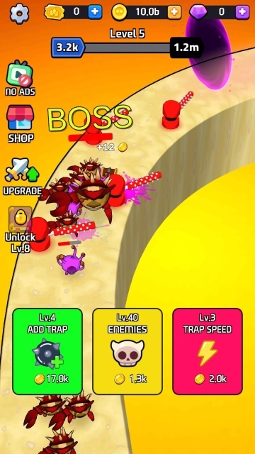 2. 亲手粉碎怪物:别光依赖陷阱!用手指直接点击就能压扁敌人。当你亲手打倒成群的怪物时,尽情体验那种冲刺的快感吧。