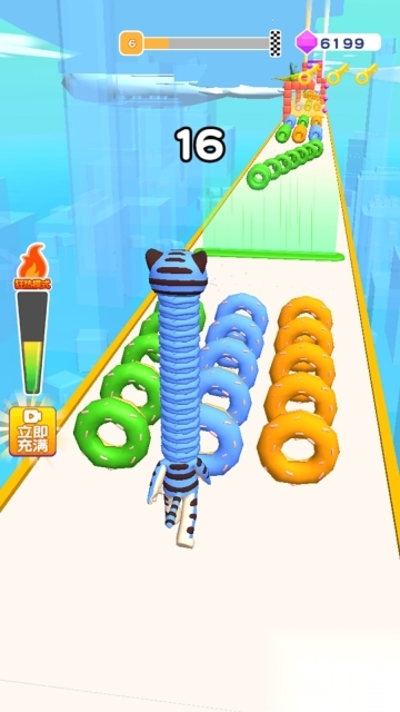 1、优先收集相同颜色的圆环,不要贪图其他颜色,确保脖子能稳定地变长。碰到连续的同色区域时,快速通过,这样可以积累更多的长度。