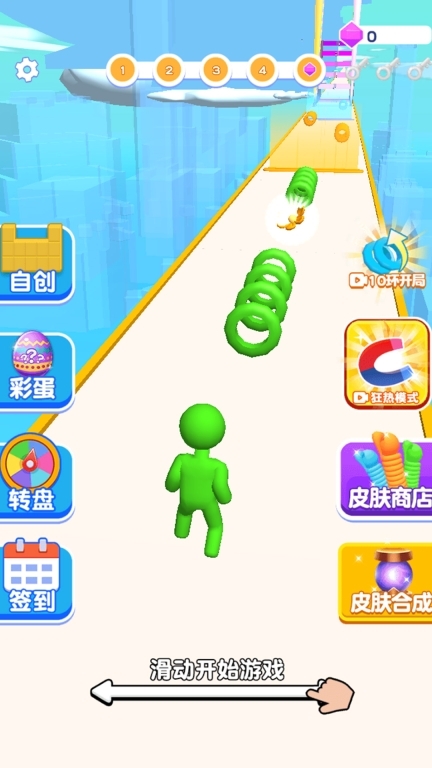 1、在跑道上收集对应颜色的圆环,使脖子长度增加,要留意避开颜色不同的障碍物,一旦撞到脖子就会变短。