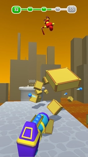 游戏玩法简单至极,玩家只要点击屏幕即可发射子弹,哪怕是从来没有接触过游戏的孩童也可以轻松上手,接下来要做的就是将准星指向那些假人,将其击倒楼顶之下。弹药方面,完全无限,不需要考虑任何的换弹夹问题;伤害方面,只要不被假人触碰到就不会出现任何问题,既没有时间限定的要求,也不需要小心楼顶上随处可见的陷阱,可谓是极其安全。
