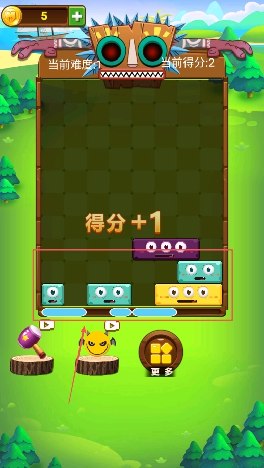 4、当滑块成功填满一行后,系统会自动消除这一行,同时在分数面板上增加一分,完成这一步操作即可继续挑战。