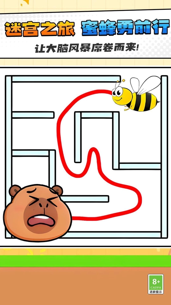 1.一笔通关:玩家需要用手指在屏幕上画出一条连续的路线,帮助小蜜蜂顺利走出迷宫,避免重复路径浪费机会。