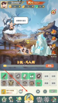 1. 进入游戏,点击“铁镐”图标敲击矿山获取装备。