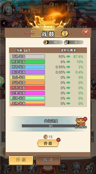 3、而而装备的品质与战鼓等级有关,等级越高掉落的品质会越好;