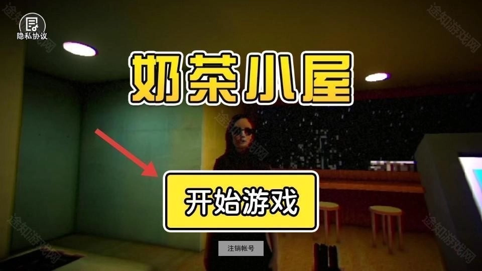 1、进入【奶茶小屋】界面,点击【开始游戏】,开启恐怖奶茶店冒险,注意查看隐私协议,熟悉游戏初始场景句号。