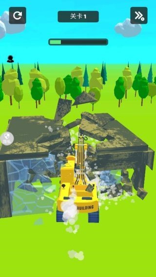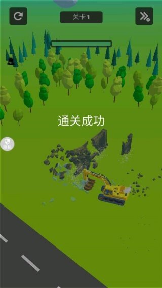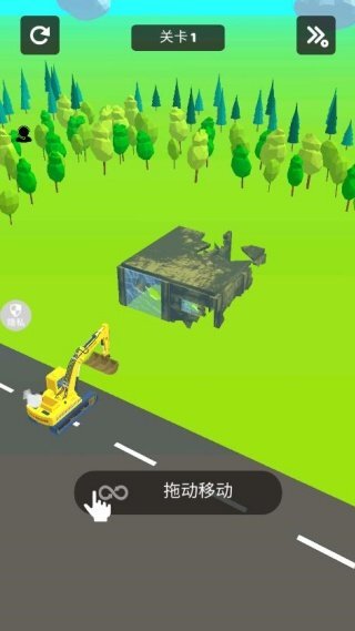 1、安装游戏后,从第一关开始挑战,任务是拆除废弃厂房,通过拖动操作挖掘机来完成。