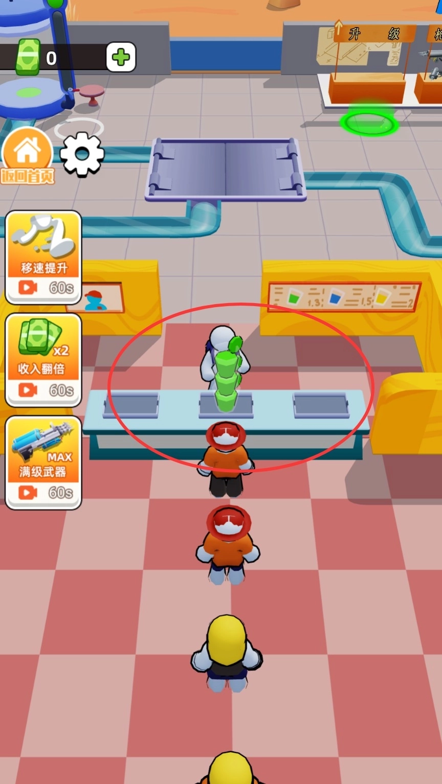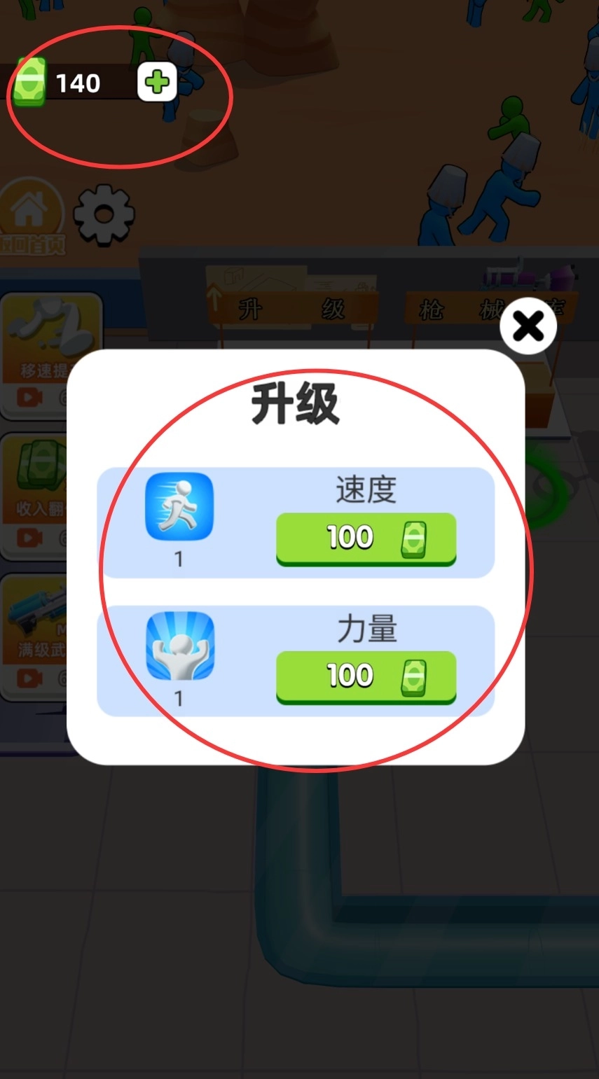 1、僵尸捕捉环节,使用升级后的装备在关卡中捕捉僵尸,不同等级的枪械对应不同体型的捕获对象。