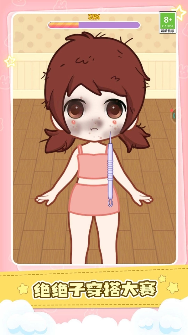 2.随玩随停体验:游戏关卡节奏轻快,适合短时间体验游玩,玩法自由不设硬性推进压力,轻松享受穿搭创作与搭配成就。