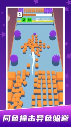 3.主角小球:玩家所操控的精致小球,拥有多种颜色与皮肤可供挑选,借助冲撞相同颜色的物体来持续推进。