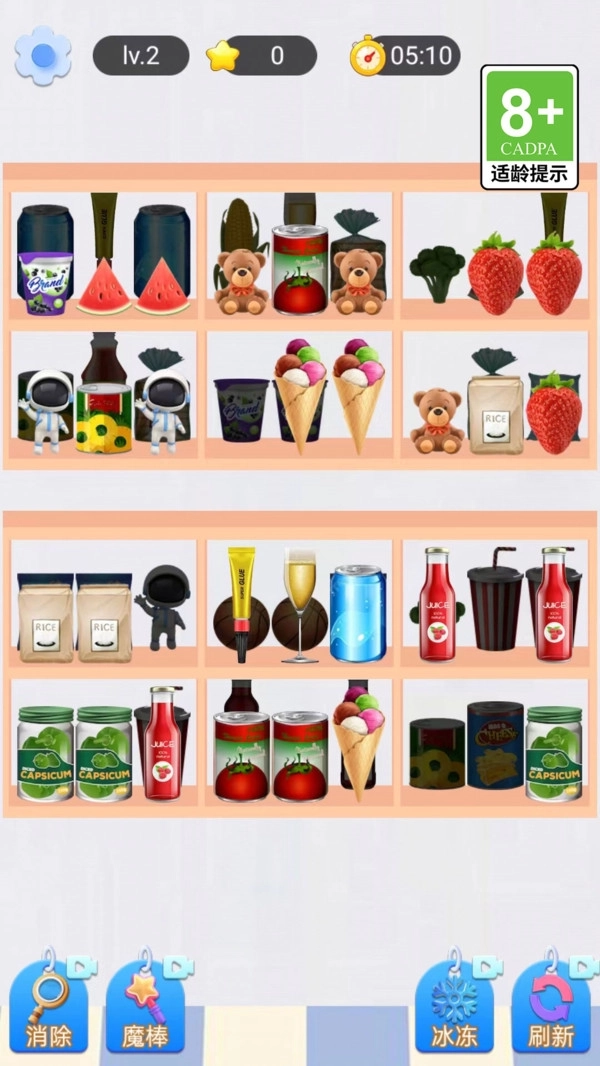 我爱逛超市是一款将超市购物与消除玩法结合的治愈系小游戏,玩家在整理商品的过程中释放压力、感受清新乐趣。