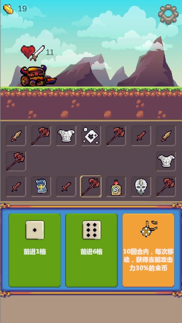 1、点击移动转盘触发不同格子效果,巧妙运用增益效果,提高战斗效率。