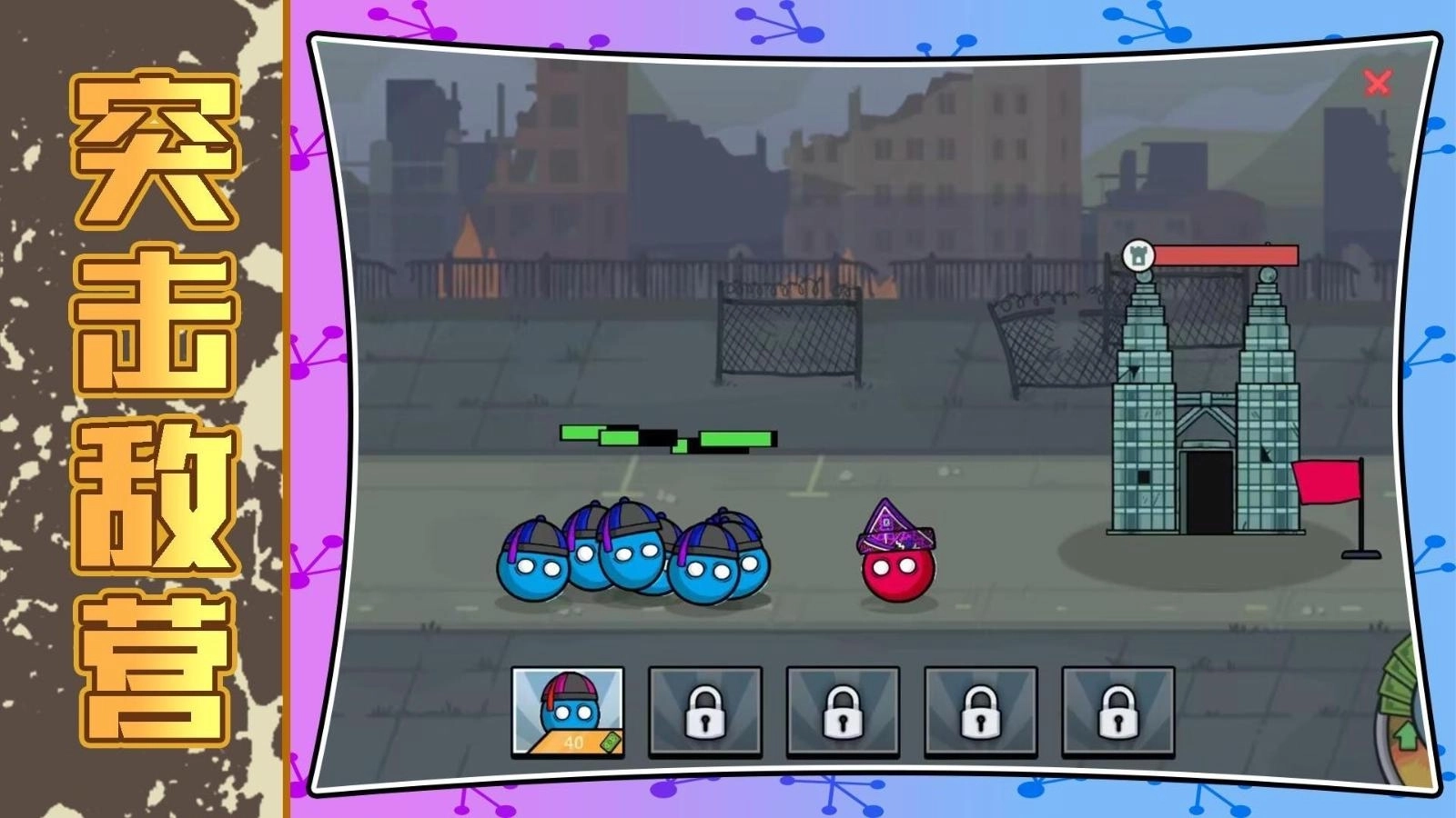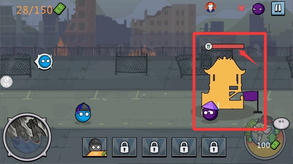 4、等准备时间结束就发起进攻,指挥小球冲向敌人营地,把对面颜色的球都撞飞就能通关。