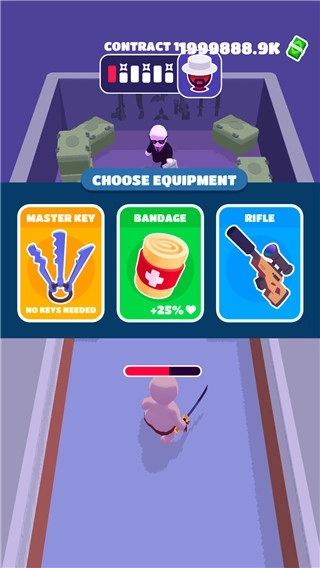 潜行大师是一款十分休闲的动作潜伏战斗小游戏,游戏画风卡通简约,玩法简单易上手。以经典的日本忍者刺客为题材背景。讲述了玩家将化身为一名隐藏在暗处的忍者,通过点击屏幕移动控制角色在不同的房间场景中前行。而不同的房间中都有着几个固定的黑衣人看守保卫。而你需要的做的就是在保证自己不被发现的情况下,按着游戏规定的轨迹进行移动至敌人背后发起攻击,完成躲避、攻击、潜入最高安全地点的一系类动作任务并成功撤离。此外,游戏中有着多种不同等级忍者等你来解锁,不同的忍者技能不同,当然带给玩家的游戏体验也不同。感兴趣的小伙伴可以来试玩哦!