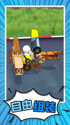 玩家在游戏中打造一艘飞行船,把机翼、发动机和机轮装配到飞机上。