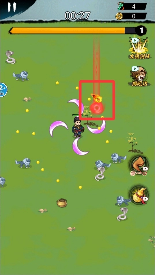 3、清除特定区域后会掉落闪光道具,拾取后可随机获得加速、范围扩大等临时技能,持续10秒效果。