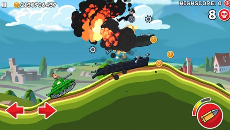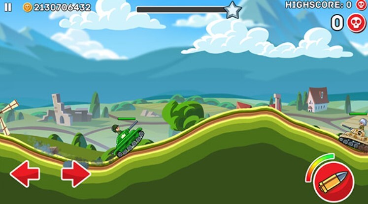 游戏正式开始后,左下角的左右箭头分别用于控制战车前进与后退,右侧是射击按钮。绿色血条显示战车的血量,战斗时要尽量以最小损伤取得最大战果。