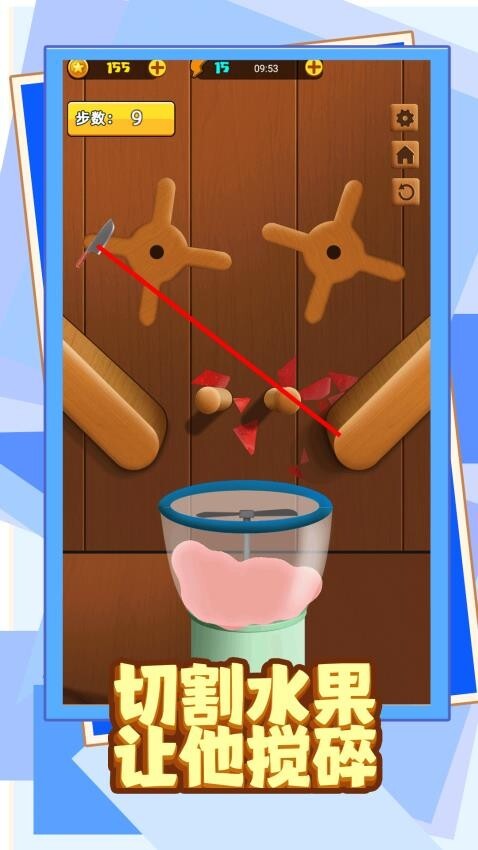 1、在挑战过程中,你会看到需要用到的水果,你可以依据水果的大小来确定切割的位置,如此就能获取到更美味的果汁了。