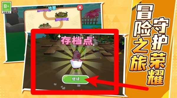 2.遇到存档点点击继续即可记录进度,角色失败或离开后能从此处复活前行,省去重复跑图专注解谜。
