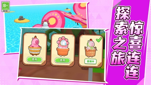 1.奇幻冒险:探险奇缘以卡皮巴拉为主角,玩家将深入神秘岛屿探寻隐藏秘密,丰富的奇幻氛围让每一次探索都充满惊喜与未知。
