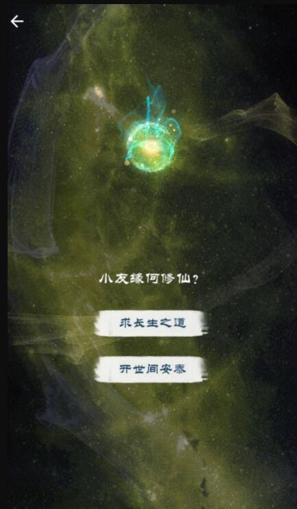 1、进入游戏后,跟着剧情选择修仙初心即可,不用纠结具体选项,关键是熟悉界面功能以及灵气积累的基础操作逻辑。