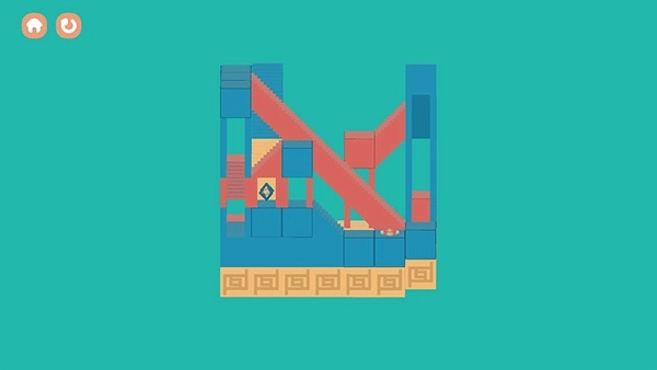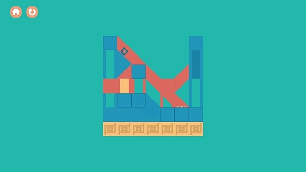 1、游戏会给到玩家三个平面,中间部分平面是残缺的一个正方形,玩家需要在两边的平面上根据中间平面上残缺的图形填充方块。
