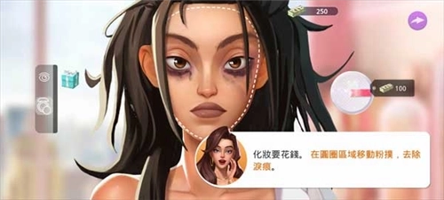 3、需要注意的是不管是化妆还是打扫什么的,道具都是需要花钱的,所以你需要确保你的钱都是足够的。开始化妆的第一步,用粉饼去除泪痕。