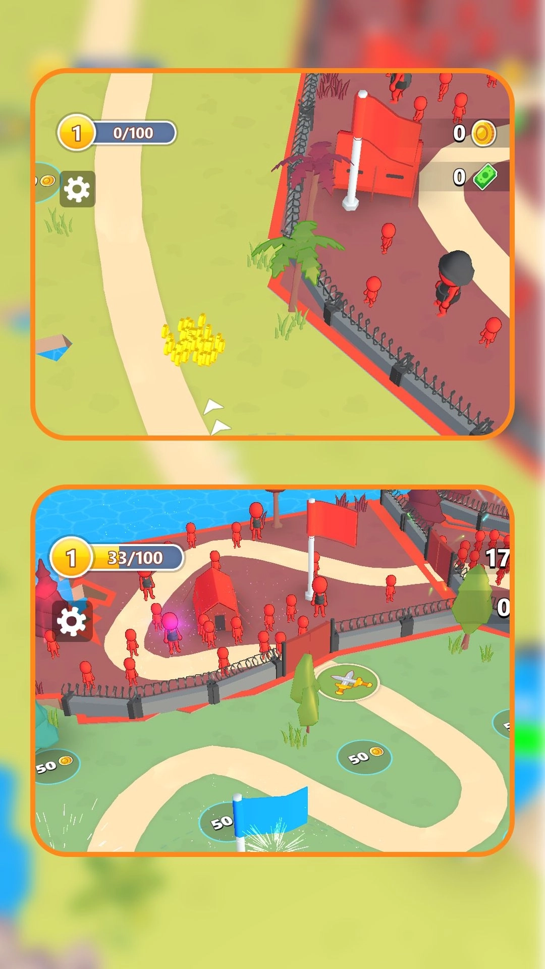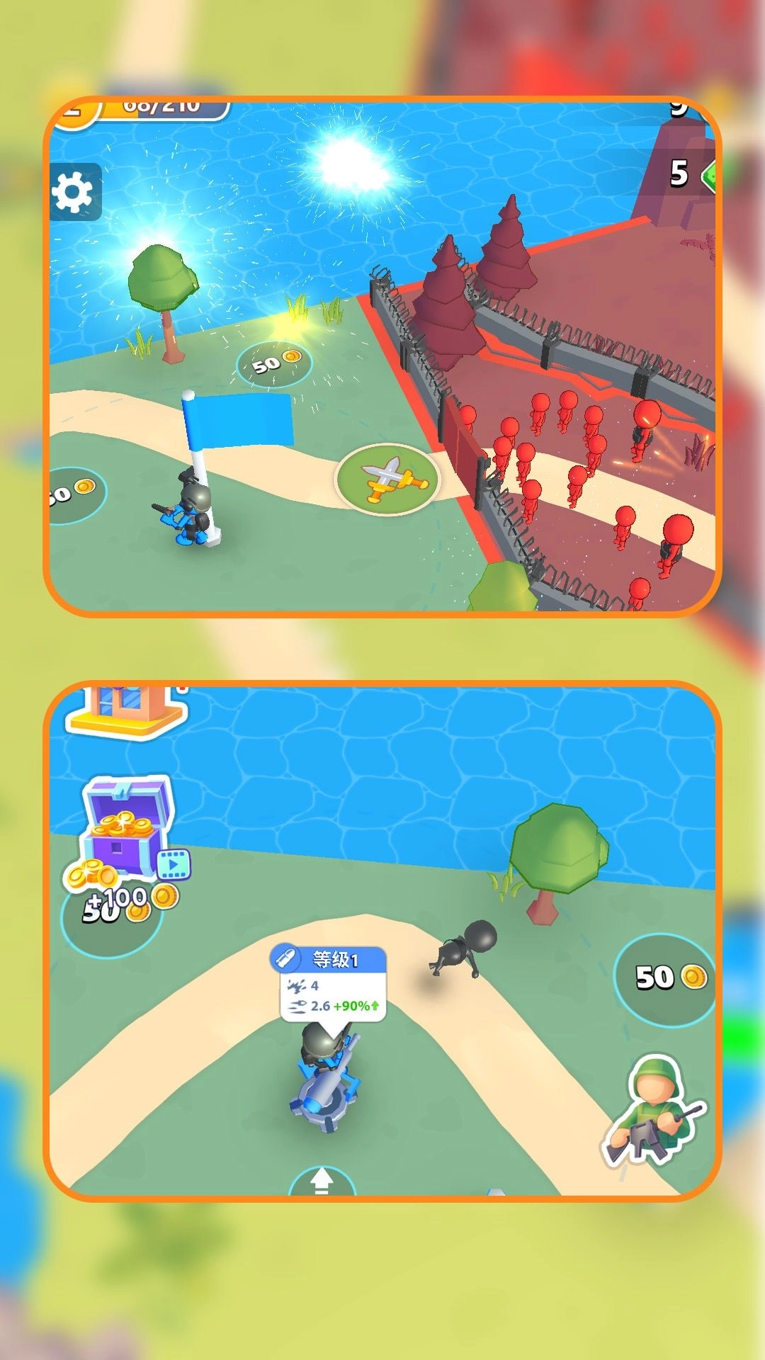 1、玩家需要招募不同兵种,组建作战队伍,合理分配资源提升小兵战斗力。