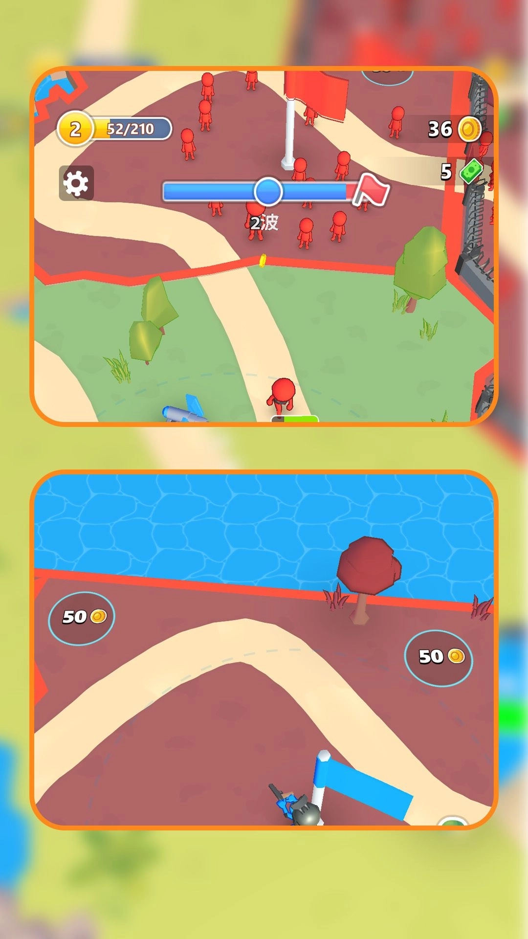4、每个玩家初始只有一人,通过不断努力,可以变得越来越强大,最终组成冲锋队,制霸一方。