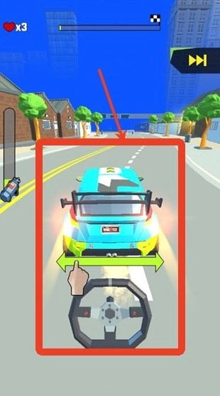 2、滑动屏幕控制赛车在赛道中的移动方向。